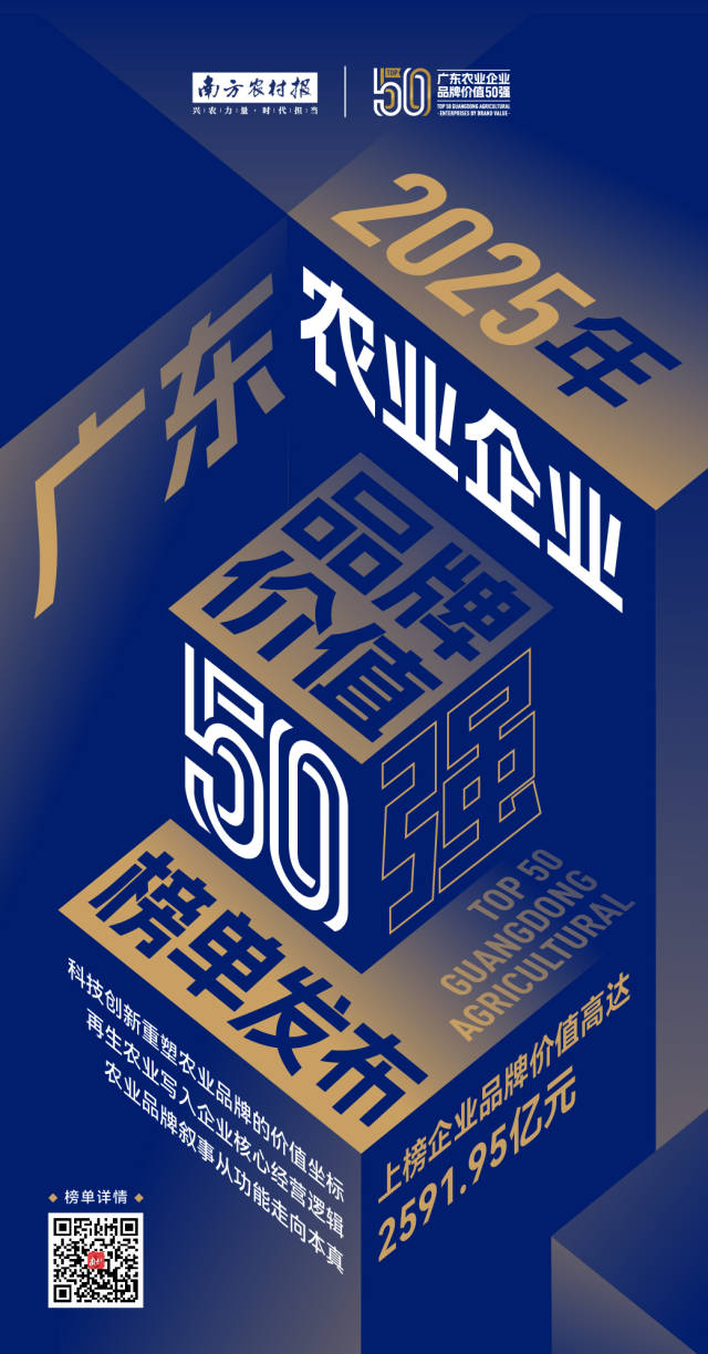 2025年广东农业企业品牌价值50强榜单重磅发布。