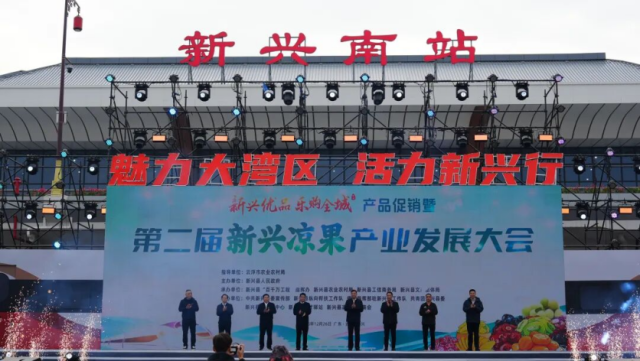 12月26日,“新兴优品,乐购全城”产品促销暨第二届新兴凉果产业发展大会在广湛高铁新兴南站站前广场开幕,大会以“节”为媒,以“果”会友,共谋新兴凉果产业发展。新兴县委书记陈哲江,县委副书记、县长赖鉴铭,县人大常委会主任候选人陈洪伟,县政协主席伍树全出席开幕式。