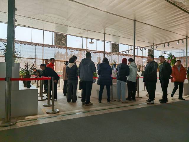 开幕式现场阳光和煦,形态缤纷的国兰、蝴蝶兰错落陈列,吸引众多爱好者驻足品鉴、留影记录。