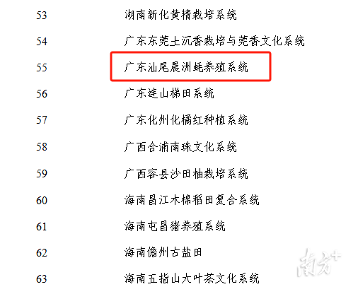 1月12日,农业农村部公示第八批中国重要农业文化遗产候选项目名单,广东汕尾晨洲蚝养殖系统成功入选,标志着这一延续数百年的特色养殖系统在农业文化遗产保护和传承方面迈出了重要一步。