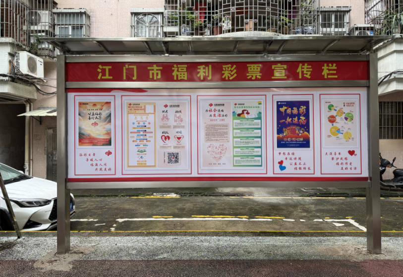据了解,这些由江门福彩助力社区添置的石桌台面与石凳的靠背上,均刻有“为社会造福 为生活添彩”“中国福彩 一起造福”字样,倡导市民关心公益、支持公益。同时,江门福彩在社区的宣传栏张贴公益福彩宣传海报,展示福彩“扶老、助残、救孤、济困”发行宗旨及公益金筹集分配比例,科普福彩小知识、倡导理性购彩;公益标识牌则温馨提示居民文明使用设施,携手共建文明爱护环境城市。