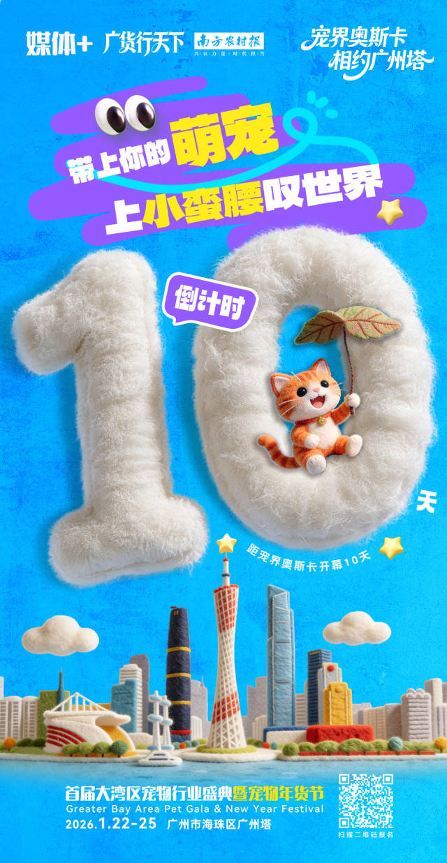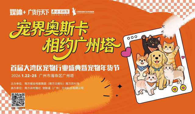 宠界奥斯卡,相约广州塔!由南方报业传媒集团(南方日报社)南方农村报主办,南方农村报社、宠联星(广州)文化科技有限公司承办的“媒体+”广货行天下·首届大湾区宠物行业年度盛典暨宠物年货节,将于1月22日-25日在广州市海珠区·广州塔举行。