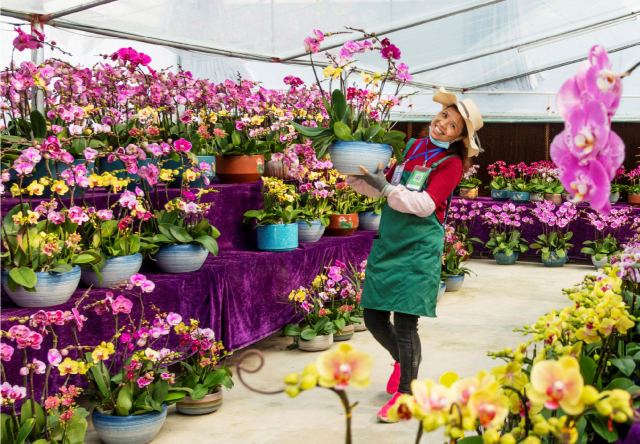 目前,四会全域种植兰花面积约1万亩,兰花年育苗3300万株,品种有国兰、杂交兰、洋兰、蝴蝶兰四大系列230多个品种,年产值约6亿元,兰花电商线上销售突破1亿元,为粤港澳大湾区最大的兰花种植基地,也是广东省兰花主要供应地之一。