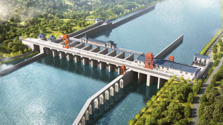 黄茅峡水库工程在清远正式开工, 建成后将进一步完善北江流域防洪体系。图为黄茅峡枢纽效果图。