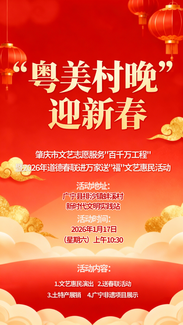 “粤美村晚”迎新春——肇庆市文艺志愿服务“百千万工程”暨2026年道德春联进万家送“福”文艺惠民活动
