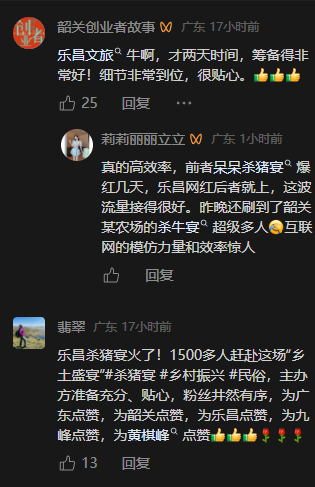 就如黄棋峰在近日的一条视频中所言,乐昌年猪饭能吸引上千人参与,离不开政府部门的支持。这个过程中,广东“媒体+”赋能乡村振兴,已经趟出了一条好路子。当手机变身“新农具”,直播成为“新农活”,政府在乡村发展历程中应当扮演的角色——不是追求短期热度,而是搭建生态。流量不能悬置于空中,必须与坚实的产业根基和文化底蕴相结合。政府应引导流量向实体产业深度转化:通过电商直播赋能特色农产品,但更需同步严把质量关、建设溯源体系、打造区域公共品牌,将“一时火爆”变成“长期复购”;通过短视频引爆乡村旅游,但更需完善配套设施、丰富消费场景、提升服务品质,让“头回客”成为“回头客”。更重要的是,流量挖掘应深度绑定乡村独特的文化基因与生态价值,无论是非遗手艺、民俗节庆,还是山水肌理、村落美学,都应成为流量讲述的深层故事。