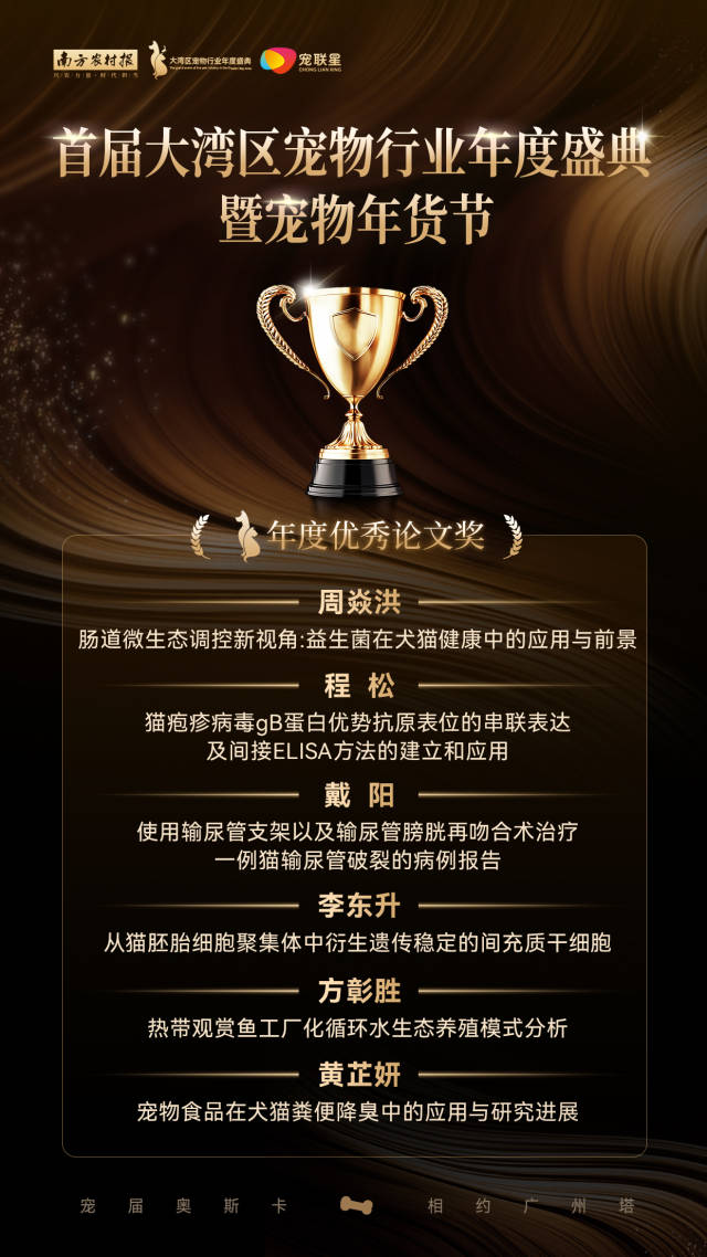 盛典还特别颁发了“年度优秀论文奖”。周焱洪等6位学者,凭借扎实的专业研究与独到的行业洞察,斩获此项荣誉,为宠物领域学术研究与实践应用注入了新的活力。