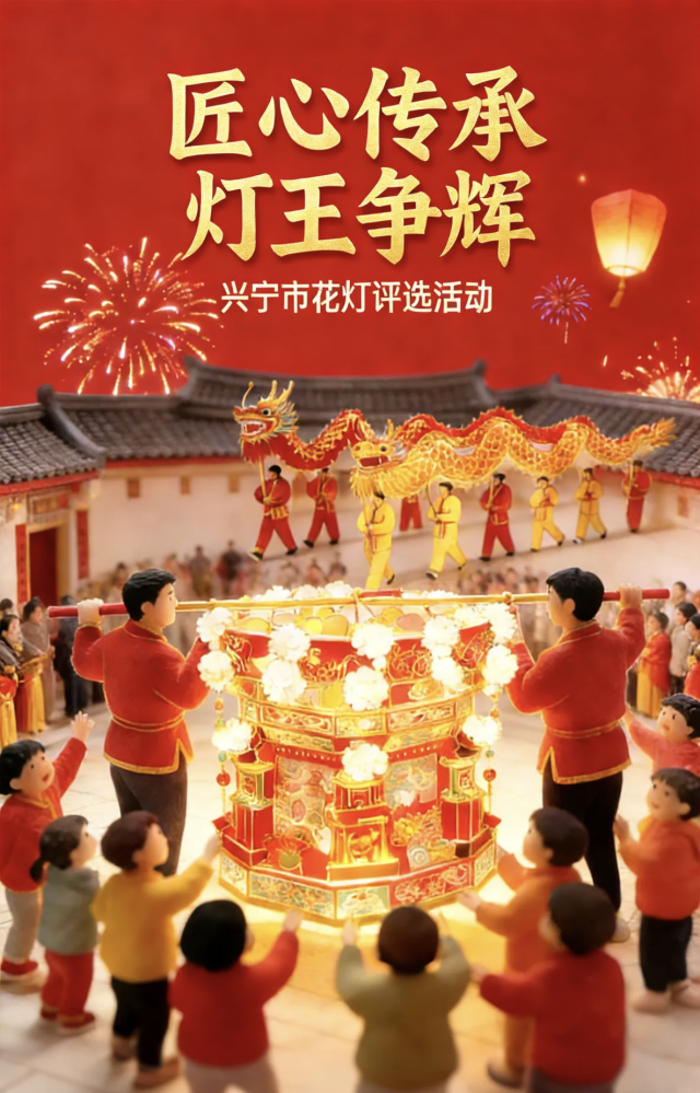 “兴宁上灯大过年”,兴宁花灯,这盏客家灯火,既是省级非物质文化遗产的鲜活载体,更是“中国花灯之乡”最鲜明的文化印记 。为深入挖掘花灯文化内涵、传承匠心技艺,进一步擦亮城市文化名片,兴宁市多部门联合发起“匠心传承·灯王争辉——兴宁市花灯评选活动”。活动自2025年12月15日启动以来,得到全市花灯制作工匠的热烈响应,匠人们以竹为骨、以纸为衣,将兴宁地域特色和美好祈愿融入到传统工艺中 。至2026年1月22日征集截止,共征集到22份优质花灯作品。