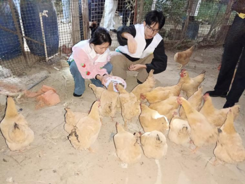 会后,项目组一行前往乐田园农庄,开展艾草鸡饲料投喂现场实验。投喂过程中,鸡群争相抢食、食欲旺盛,直观验证了这款自主研发饲料对家禽的适口性优势,为艾草饲料的精准配比优化、多场景推广应用及规模化工艺制备筑牢了实践根基。