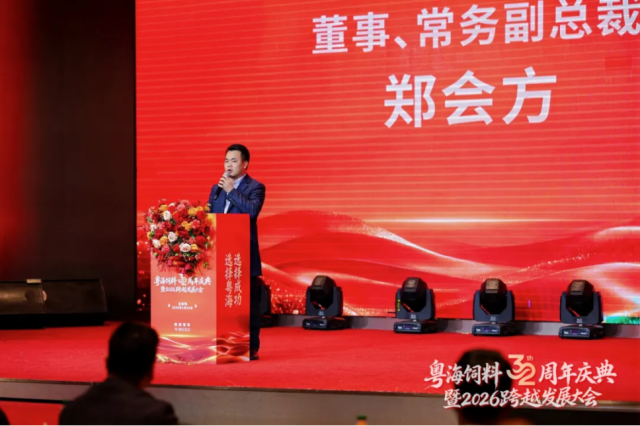 “粤海上市以来,经过三年改革沉淀,2026年将有一个大的突破。”在这次庆典上,粤海饲料董事长郑石轩提出,经过大力度的变革调整,公司在技术赋能、管理提效、产品升级、服务落地、保障有力等方面均有大幅度进步,可以说各方面都打好了基础,2026年将是粤海饲料的爆发年。