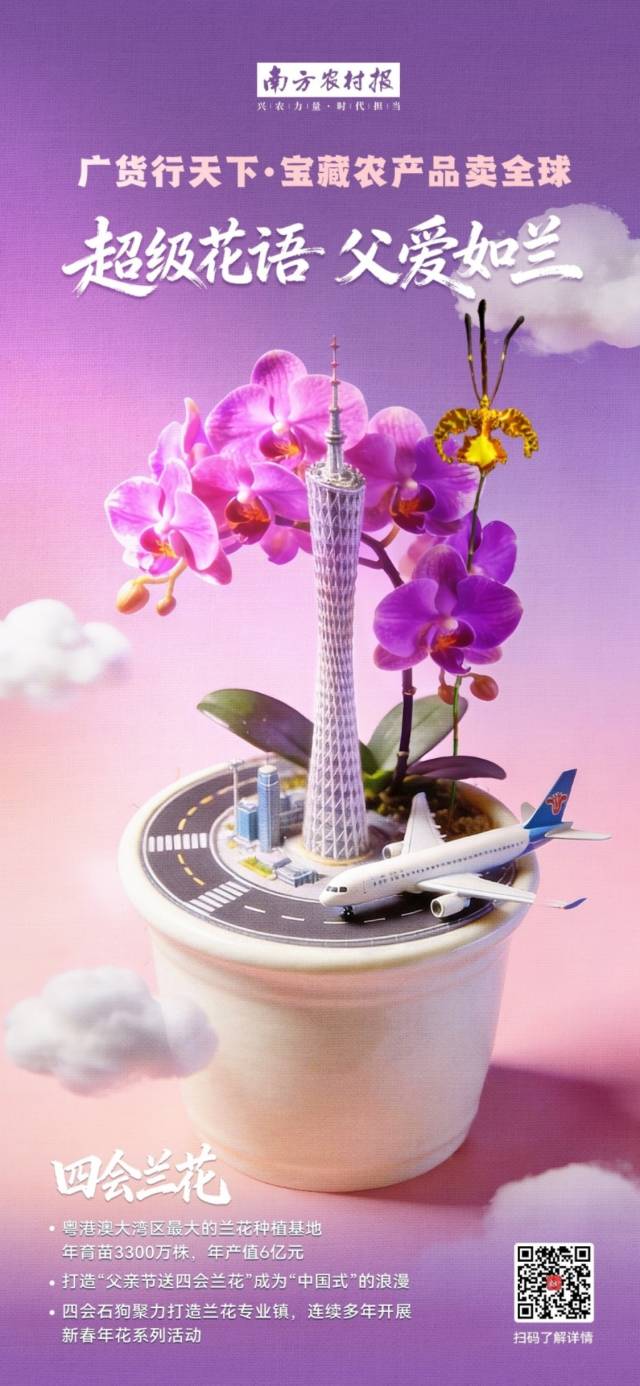 当四会兰花被赋予了“父爱如兰”的情感内涵,以中国式花语传递中国人含蓄而深沉的情感表达,这份广货也拥有了独特的浪漫。而当“广货行天下”的号角吹响,四会兰花以其独有的文化气质,成为了广货中最具温情和诗意的代表。