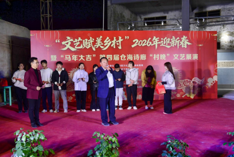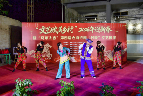 近日,在梅州市蕉岭县文福镇,以“新春送福贺佳节”为主题的第四届仓海诗廊“村晚”举行。村民们扶老携幼,欢聚在景区那棵苍劲挺拔的大榕树下,用最质朴、最热烈的方式展现乡村文化活力,营造出喜庆、祥和的节日氛围。