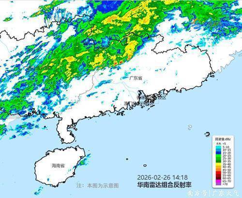 预计,26日,韶关、清远、肇庆北部有中雨局部大雨,其余市县阴天为主有分散小雨;27-28日,受弱冷空气和偏南暖湿气流共同影响,中南部市县普遍有中到大雨局部暴雨,部分市县伴有弱雷电、短时强降水和6-8级短时大风。另外,26-28日早晚的部分时段有能见度低于1公里的雾。交通出行需关注雨雾天气导致的低能见度、道路湿滑等不利影响;琼州海峡早晨的间歇性海雾天气将对通航有一定影响。