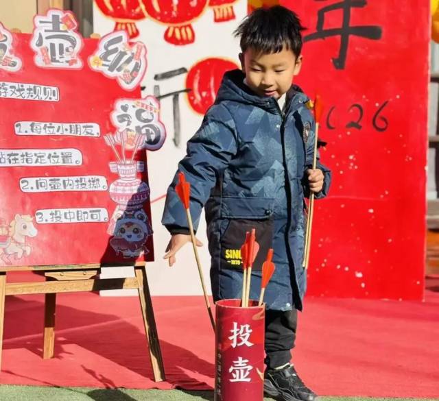 游戏规则:每位参与者有1次挑战机会。玩家需站在投掷线外,身体不得超过投掷线,将箭投入壶中,5支箭中投中2支及以上者,即为挑战成功。