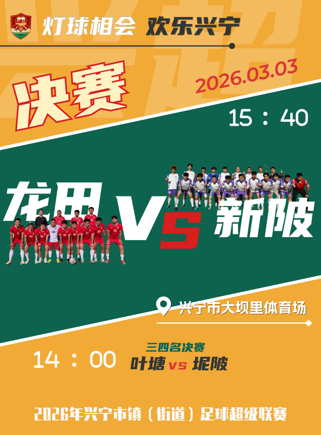 随着半决赛落幕,本届“兴超”联赛即将迎来收官之战!3月3日(正月十五)下午,“兴超”三四名决赛(14:00开赛)、决赛(15:40开赛)将在大坝里体育场打响,究竟哪支队伍能捧起冠军奖杯?让我们拭目以待!