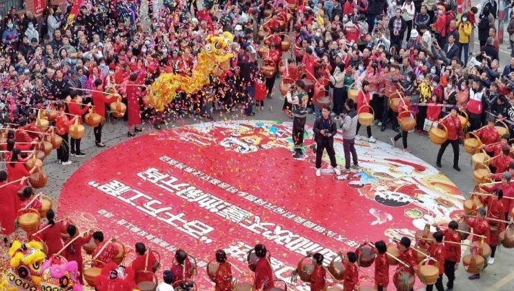 下午3时许,鞭炮齐鸣,醒狮腾跃。