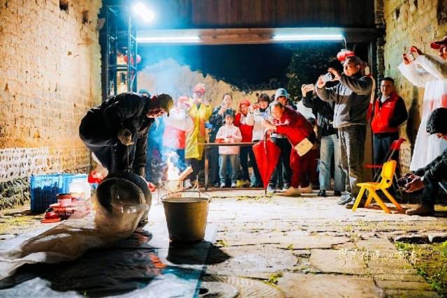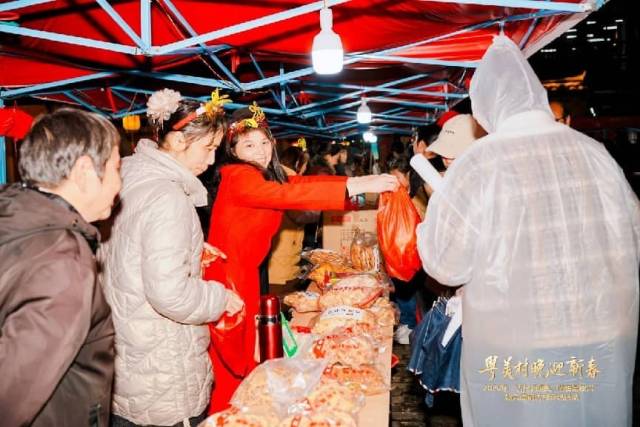 互动专区里,猜灯谜、投壶、滚铁环等传统游戏旁,挤满了嬉笑的孩童;非遗墟市中,新鲜出炉的始兴特色小吃香气四溢,老式爆米花机“砰”的一声,爆出满巷的年味与回忆。这种“推门见戏、收工看舞”的沉浸式体验,让整座古村仿佛回到乾隆年间商贾云集的繁盛时光,又增添了几分现代乡村的祥和与自信。