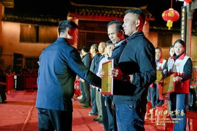 在“礼敬乡贤·感恩邻长”赠礼环节,那些平日里走村串户、热心乡里的“邻长”们和在外奔波仍不忘乡梓的乡贤们走上舞台。据了解,韶关市探索开展“睦邻制”改革试点,创新“片组邻”工作机制,按照“就近、就便、就熟”原则,将居住相对集中的5至15户村民划为一个“邻”单元,在村民小组基础上进一步细化治理单元,让基层治理的“神经末梢”直抵群众身边。邻长带头参与人居环境整治,带领群众增收致富,带动群众投身“百千万工程”。这一刻,村晚的舞台不只属于表演者,更属于每一位为这片土地流汗、增彩的平凡建设者。