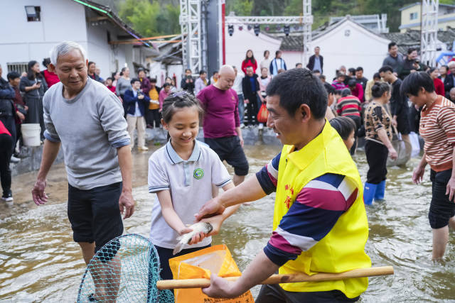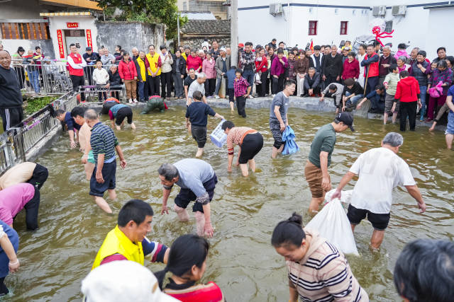 而屋外池塘里上演的趣味摸鱼活动,则将热闹推向一个小高潮。男女老少卷起裤腿踏入池中,水花四溅,每当有人成功摸到游鱼,现场便爆发出一片欢呼与掌声。