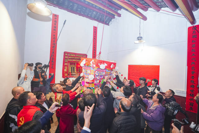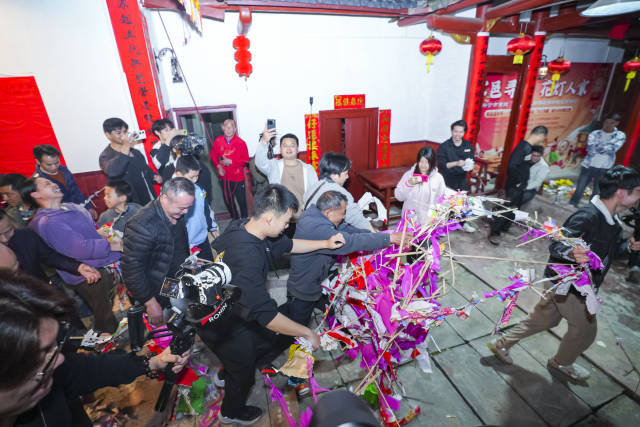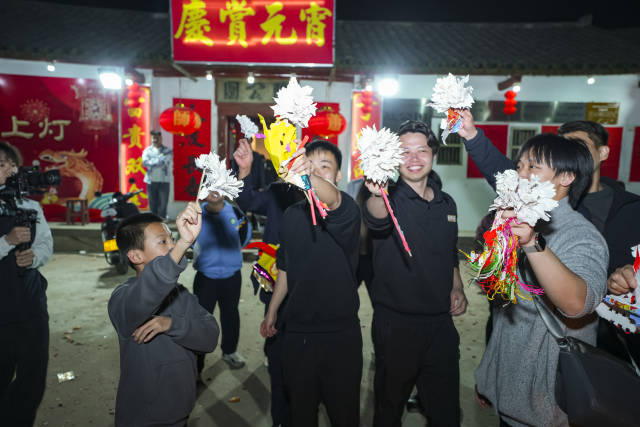 临近午夜,烟花秀点亮夜空。随后,活动在“抢花灯”环节达到最高潮。随着象征吉庆的“添丁灯”被取下,现场人群瞬间涌向前方,争相触碰、传递甚至轻轻争夺这盏吉祥之物。按照传统,最终接得花灯的家庭,被认为接下了新一年人丁兴旺、好运相伴的美好寓意。在热烈非凡的民间欢腾中,暖灯盛会圆满落幕。