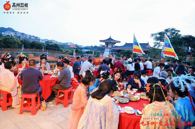 鼓点急促的醒狮一跃而起,木偶戏的唱腔婉转悠扬,万亩淡黄的荔枝花在山坡上肆意绽放……来自四面八方的宾客围坐在丁坑村(属于茅坡村委会)的年例宴前,巫梅均代表主人家不停地往客人碗里夹菜,口中念叨着:“食多滴,食多滴(多吃点)。”