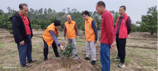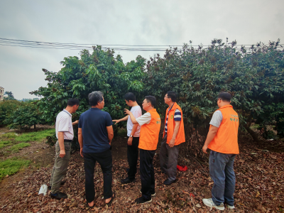 在茶苗繁育基地附近的农创优品种养专业合作社庞小宇荔枝种植基地,服务团队临时停车察看,发现果园存在一些管理问题。由于负责人庞小宇不在现场,龙伟平副主任通过手机信息详细告知果园存在的问题及改进建议,确保技术指导及时到位。