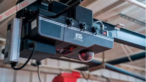 种猪场智能轨道机器人正在对猪群进行巡检。