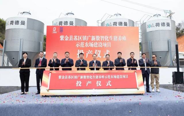 近日,广新集团“百千万工程”重点帮扶项目——广新数智化生猪养殖示范农场投产仪式在紫金县苏区镇举行。广新集团党委副书记、董事、工会主席黄家合出席活动并致辞,紫金县委书记黄春彭参加活动。