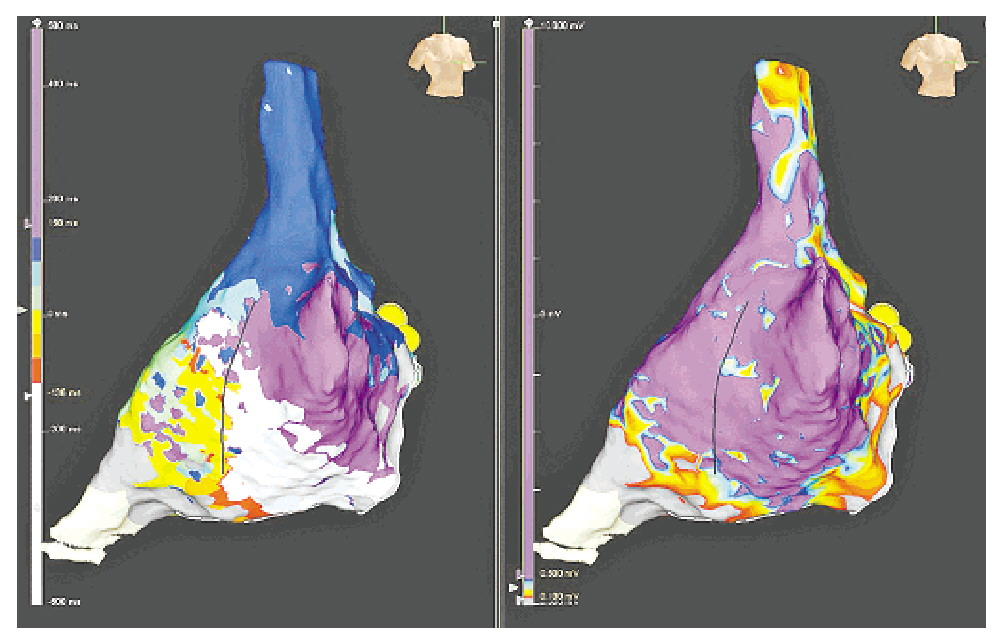 与小淇及其家属充分沟通后,心血管内科一区专家团队为小淇施行射频消融术,借助三维心脏标测系统,构建心房三维解剖模型并实时显示在大屏幕上,通过直观可视的模型,精确定位异常起搏病灶,随后释放射频电流,成功消除心房颤动,使小淇异常跳动的心脏找回了正常的节律。