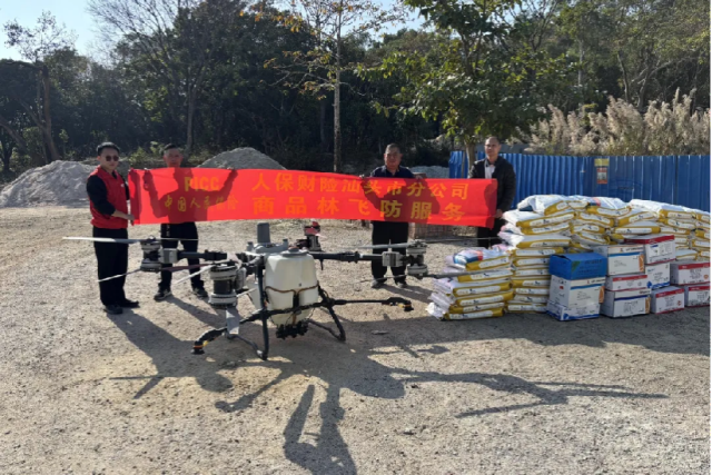 护绿更要守绿,广东人保财险依托创新打造的“保险+科技+农服”农业风险减量模式,以科技手段提升林业防灾减灾能力,为森林资源送上专业守护。2月4日,汕头潮南支公司聚焦松材线虫病防治这一林业难题,为重点生态区域提供无人机飞防服务,凭借无人机高效、精准作业优势,破解山区林地人工防治的痛点,为林木险投保人提供专业的病虫害防治支持,最大限度降低林业灾害损失。