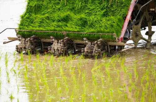 田间地头,农户们分工协作、干劲十足,有的弯腰整理秧苗,有的操控着无人驾驶插秧机穿梭作业,一行行嫩绿的秧苗被整齐有序地插入田间,精准高效。