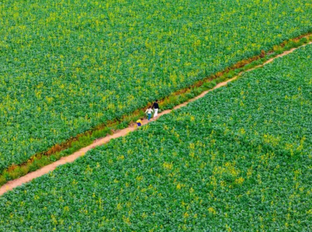 这份春日的耕耘,离不开冬季播下的“绿色伏笔”。2025年,沙溪镇在龙头环村、板尾园小组等多个村统筹推进约400亩冬种轮作,通过种植油菜花、格桑花等作物,探索出一条“以种代养、以旅促产”的生态新路。在板尾园小组,连片格桑花竞相绽放,不仅成为增收的“颜值担当”,更通过绿肥还田实现土壤改良,实现生态效益与经济效益双提升;在龙头环千亩稻田片区,冬种作物油菜花与文旅项目深度融合,既打造出“金色田园”的打卡景观,吸引游客驻足,又以生态养地模式为春耕积蓄了肥力和强劲动能,走出了一条“农文旅融合+耕地保护+粮食生产”的沙溪镇全域土地整治新路子。