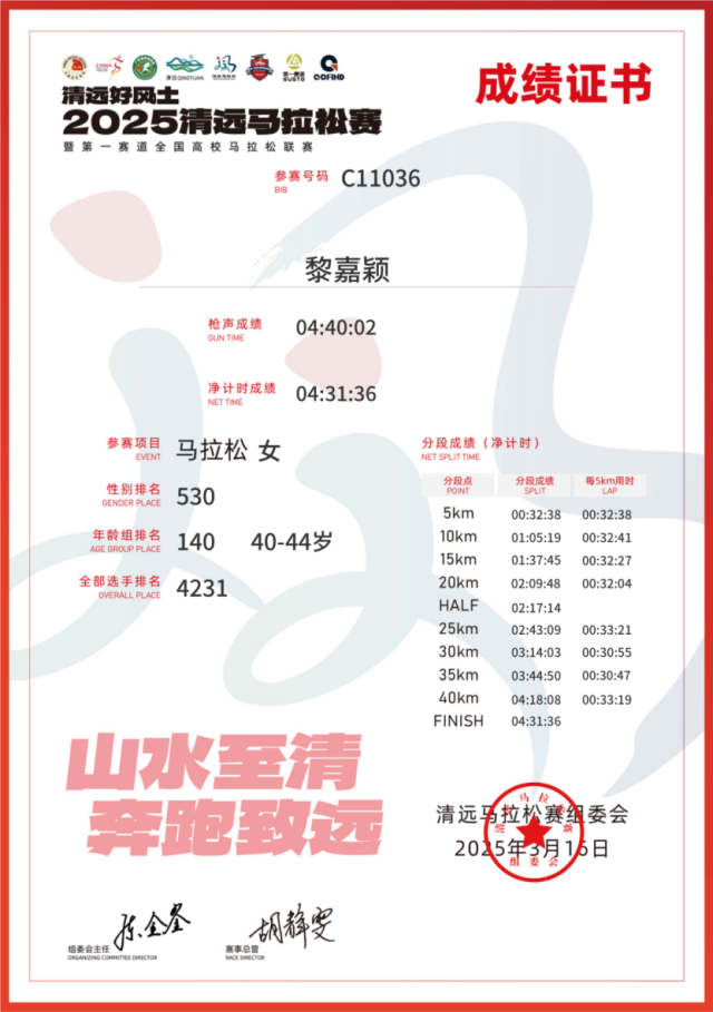 那是一场大雨中的鏖战。“全程42公里,有一半路程都在下雨。”回忆起那一幕,“拖鞋姐”的记忆依然清晰。雨水模糊了视线,赛道路面逐渐积起水洼,跑鞋踩上去发出“啪叽啪叽”的声响。不少选手选择了放弃。但她的内心只有一个念头:“豁出去了,下雨就下雨,反正走也要走完。既然报了名,就不能退赛。”