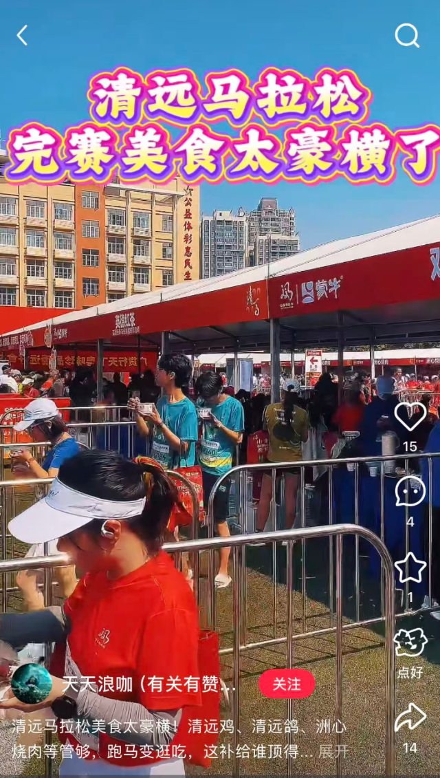 先给没到场的宝子们科普下,本届清马在终点整了条“美食能量长廊”,以清远五大百亿农业产业为代表的粤味珍品清远特色美食管够,不是那种塞两口就没的敷衍补给,是能让你扶墙进、扶墙出的那种诚意,让网友直呼“跑完又胖五斤的节奏”!