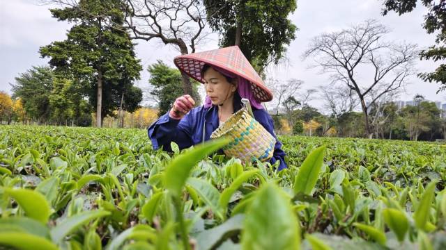 锣声落,采茶忙!茶农们身手矫健,齐采头春第一篓鲜叶。她们灵巧的指尖在嫩绿的茶芽间飞舞,小心翼翼地采下这凝聚了一整个冬天地力的精华。
