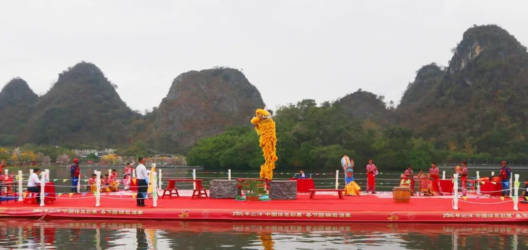 锣鼓喧天,雄狮起舞。日前,2026年云浮“中国体育彩票”春节醒狮邀请赛在云浮市云城区蟠龙天湖广场举行。来自广西、佛山及云浮本地的19支顶尖狮队、200多名运动员齐聚一堂,在水上浮台与高空桩阵上各显神通,为市民献上了一场年味十足、惊险刺激的民俗文化盛宴。活动得到了中国体育彩票大力支持。