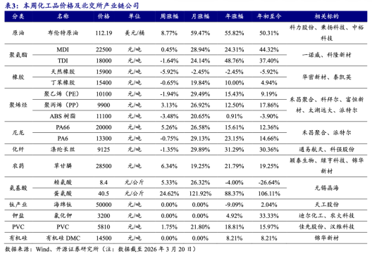 产业链层面,中金公司农林牧渔首席分析师王思洋团队指出,中东冲突通过油价传导推动农产品涨价,种植链企业与生猪养殖龙头有望受益。粮价回暖将利好种植企业业绩回升,带动种子库存消化,并加速生物育种、智慧农业等新技术的应用;同时,近期全国猪价跌至10元/kg已逼近10年最低,粮价上涨驱动的饲料成本上行或放大行业亏损,加速产能出清。