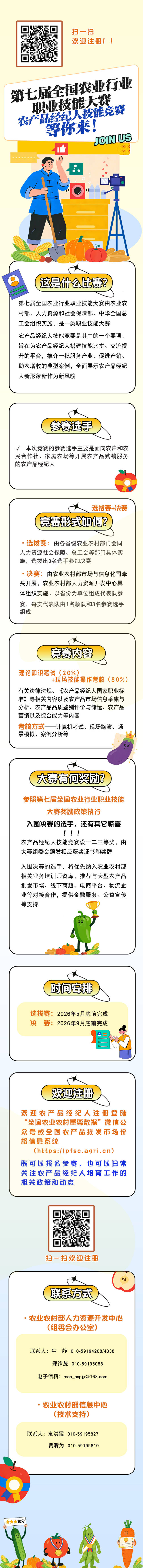 据竞赛组委会负责人介绍,经纪人可自愿注册登录“全国农业农村重要数据”微信公众号或全国农产品批发市场信息系统进行报名。下一步,农业农村部将以本次赛事为契机,持续加强农产品经纪人培育,会同有关部门修订完善《农产品经纪人国家职业标准》,加大技能培训力度,以赛促练、以训赋能,着力打造一支骨干经纪人队伍,为加快农业农村现代化、扎实推进乡村全面振兴提供有力支撑。