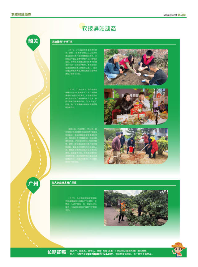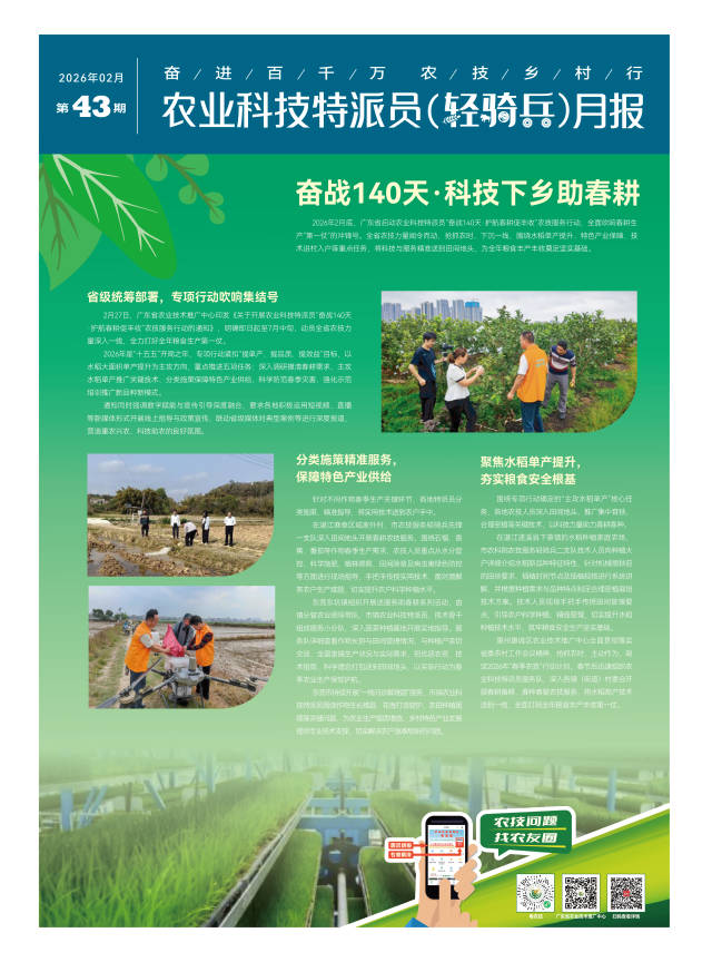 2月27日,广东省农业技术推广中心印发《关于开展农业科技特派员“奋战140天·护航春耕促丰收”农技服务行动的通知》,明确即日起至7月中旬,动员全省农技力量深入一线,全力打好全年粮食生产第一仗。