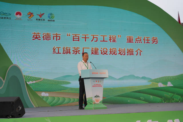 当天,英德市茶业行业协会会长官文武宣读宣读英德红茶高质量发展倡议,倡导全行业坚守品质、创新发展。中国茶叶流通协会会长王庆在视频致辞中表示,英德红茶以“一马当先”的姿态,交出了一份成色十足的成绩单,这些耀眼的数据,不仅是一个数字的跨越,更是英德红茶从“地方名片”迈向“国字号标杆”的有力证明,中国茶产业的高质量发展,需要像英德红茶这样的“排头兵”。