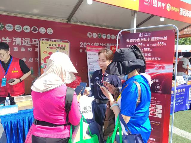 赛事准备期间,清远石油在赛事现场设置展区展示中国石化旗下高性能品牌燃油——“爱跑98”,同时,展区设置服务咨询台工作人员为运动健儿、现场群众提供相关业务咨询,并送上易捷卓玛泉暖心关怀,助力跑友取得优异成绩。