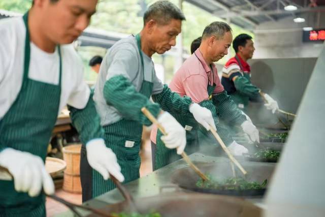 场外,一场“鲜茶赴会”的炒茶直播同步进行:新鲜采摘的明前茶青经尝鲜车从茶山直达会场,制茶师傅现场展示“杀青、揉捻、烘干”三大非遗工序,外景主持人与茶文化代表实时互动,将每道工序的技艺精髓娓娓道来,让观众直观感受百年匠心的温度。