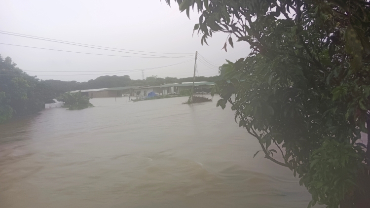 驻华东村第一书记刘显锋正在查看鲈鱼生长情况。受访者供图