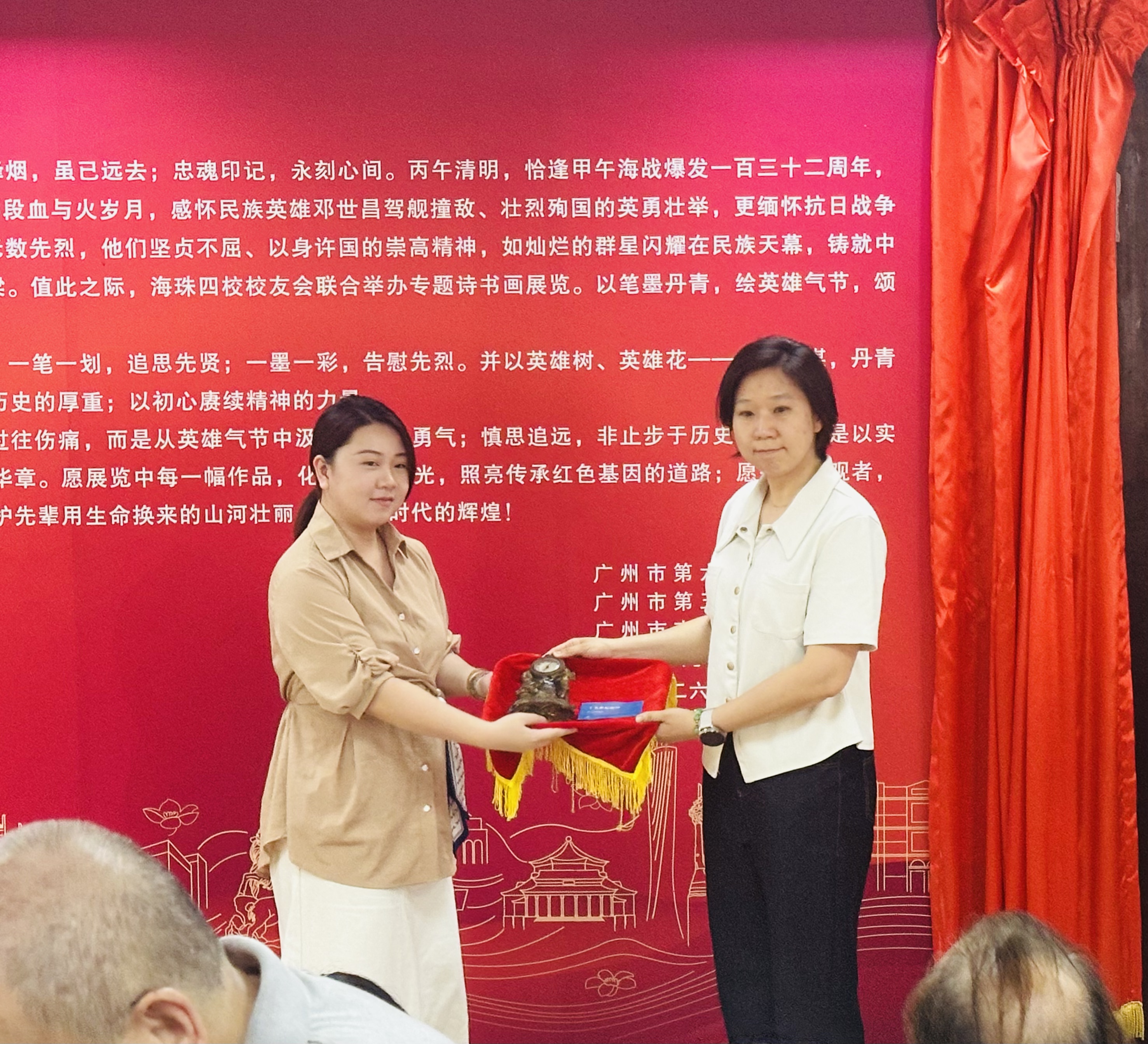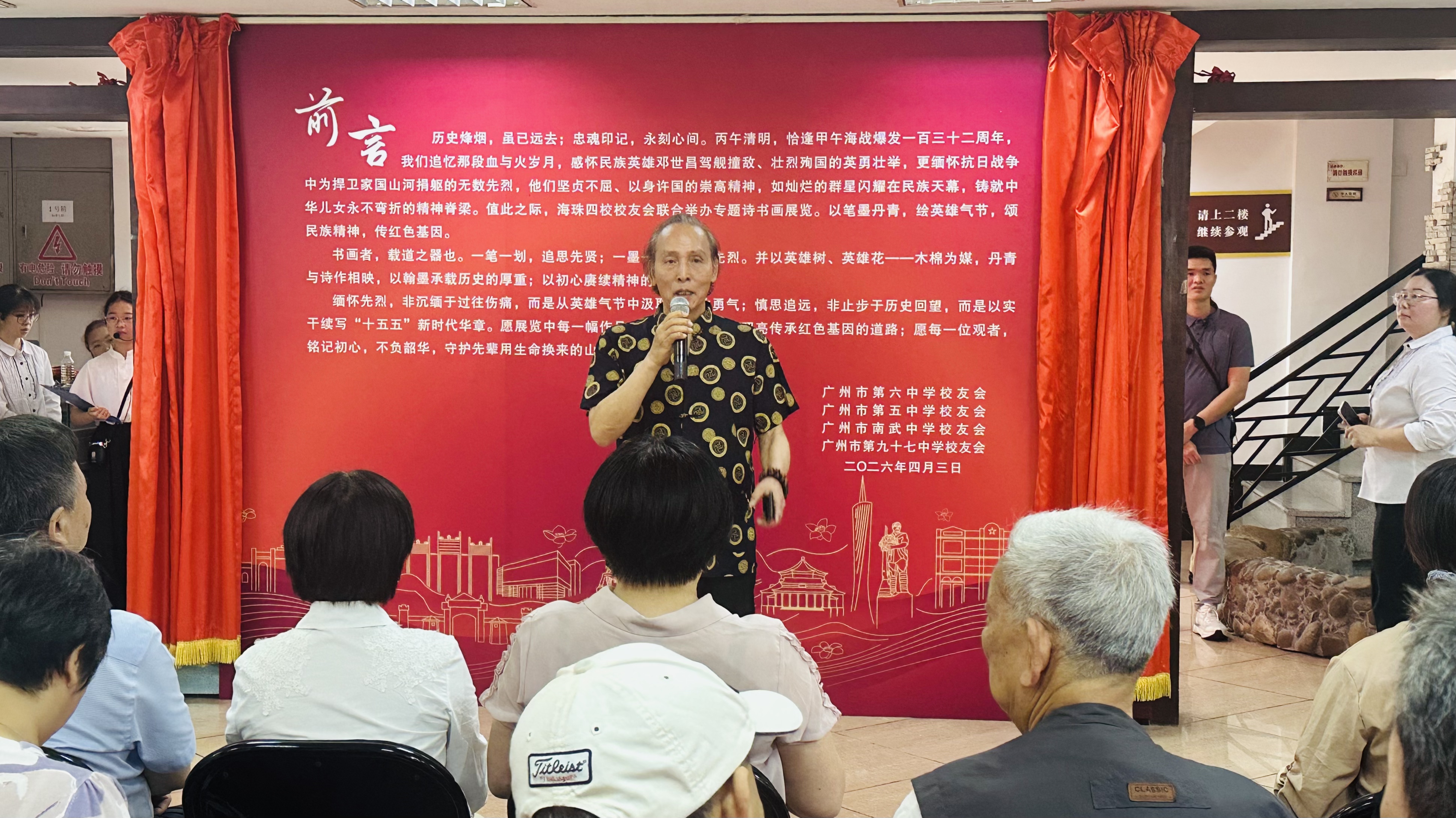 4月3日,由海珠区委宣传部和区文化广电旅游体育局主办的英雄花开英雄城系列活动《千秋忠魂 铁血丹心》专题诗书画展览开幕仪式在海珠区邓世昌纪念馆举行,来自广州市第五中学、广州市第六中学、广州市南武中学、广州市第九十七中学和邓世昌纪念小学百多名校友书画家齐聚于此,共享这艺术之盛会。本次活动得到海珠区邓世昌后人、纪念馆以及以上学校领导和师生等鼎力支持,场面热烈,精彩纷呈。