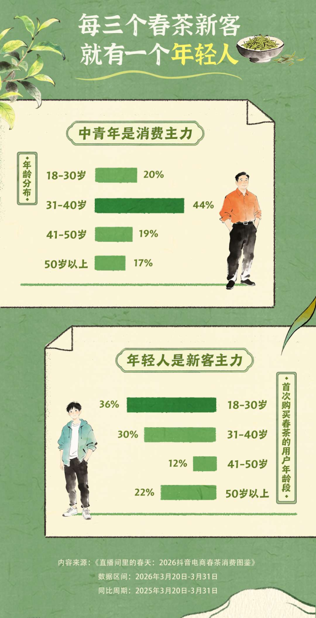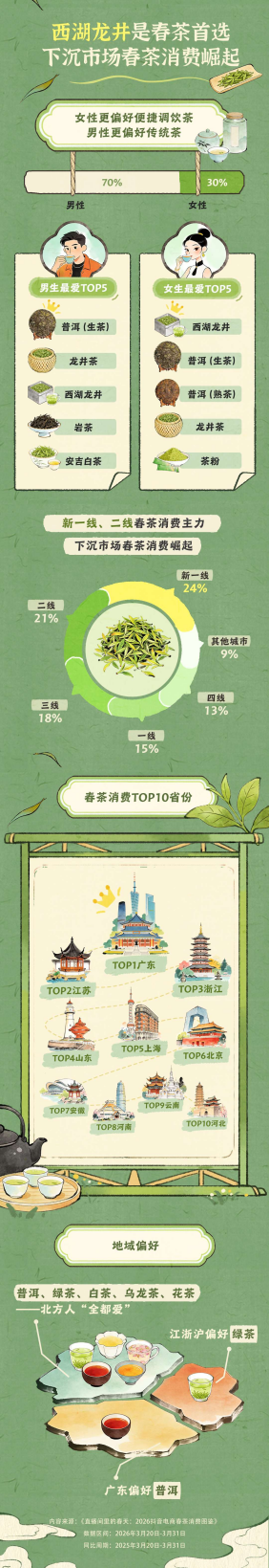 日前,抖音电商发布《直播间里的春天:2026抖音电商春茶消费图鉴》(下称“报告”)。报告显示,全国超过2.7亿用户在直播间关注春茶,广东成为平台春茶消费第一大省。以直播、短视频为代表的线上渠道,正成为传统茶业焕发新活力的重要增长引擎。
