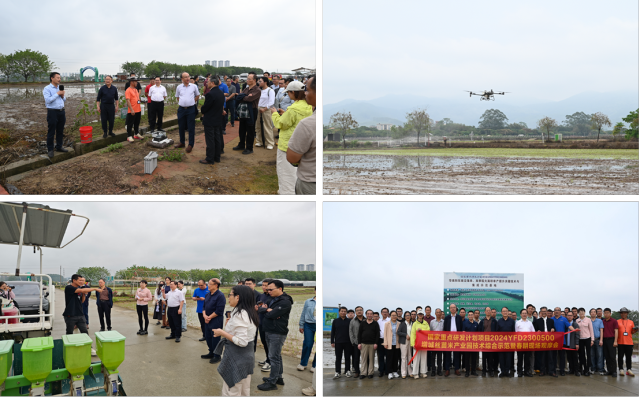 与会人员实地参观育秧工厂、智能机库、智慧指挥中心,观摩无人化插秧、高速条直播、无人机植保等高效作业演示,共同为 “华南和东南沿海单、双季稻大面积单产提升关键技术与集成示范基地”揭牌。示范基地的正式建立,打通技术研发、集成示范、推广应用“最后一公里”,推动科研成果从实验室走向田间地头,让高产技术惠及更多种植主体。