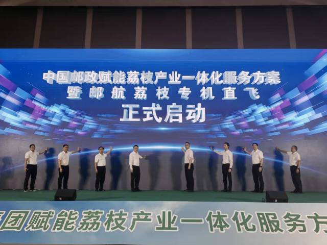 活动现场,随着一项项协议的签署、一笔笔授信的落地,领导嘉宾们登台按下象征启动的大屏按钮,邮航荔枝专机在屏幕划过,标志着中国邮政集团赋能高州荔枝产业一体化服务方案正式开始实施。