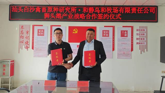 作为汕头狮头鹅核心种源与技术支撑单位,汕头市白沙禽畜原种研究所现场与和静乌和牧场达成技术框架合作协议,为后续狮头鹅产业落地新疆提供全方位技术保障。接下来,研究所将为合作方提供优质狮头鹅种源、养殖及防疫等技术支持,开展饲料研发、鹅舍建设等工作,同时建立常态化技术服务、人才培训机制,为狮头鹅在新疆实现本土化繁育、规模化养殖筑牢技术根基。