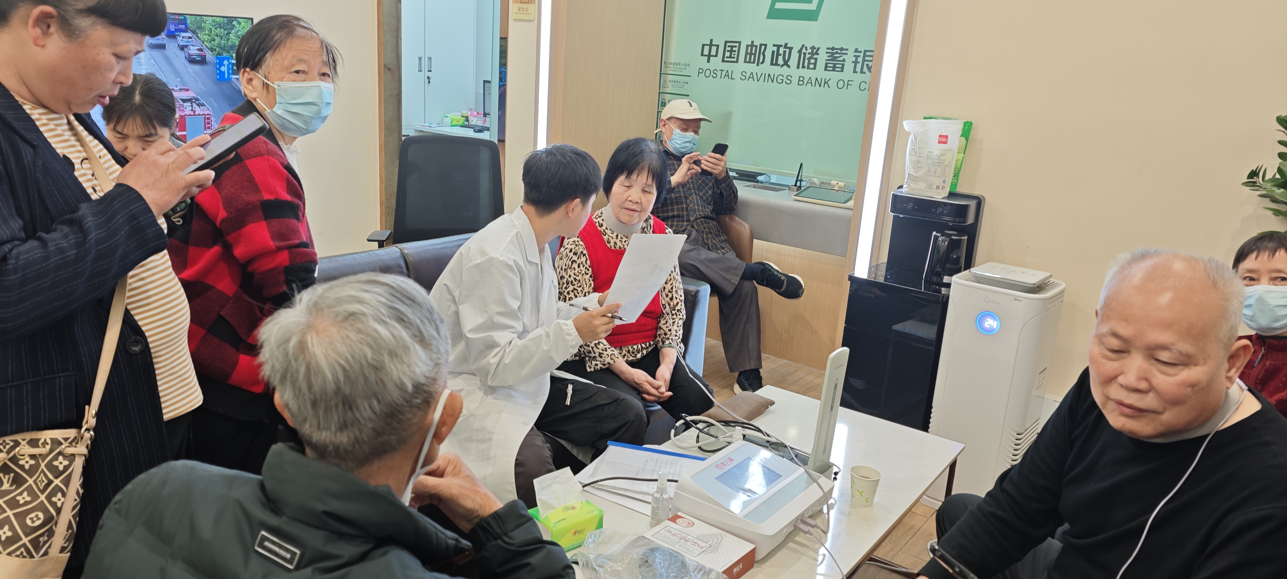 为深入践行金融为民、服务惠民宗旨,充分发挥“邮爱驿站”便民服务、暖心关怀、社区共建的阵地功能,邮储银行乐昌市河南支行依托网点“邮爱驿站”平台,联合当地口碑优良的乐昌杨安强私人诊所共同开展免费中医健康义诊活动,为广大客户及周边居民送上家门口的优质健康服务,切实把金融温度与健康关怀送到群众身边。
