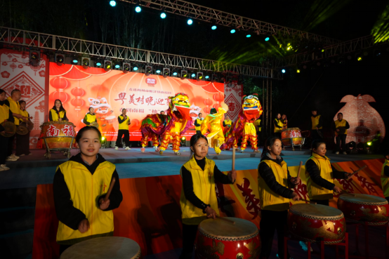 南福村“粤美村晚”活动当晚,从十多岁少年到五十多岁长者一起组成的村民锣鼓队精彩亮相。